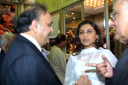 harat Shah, the producer of Devdas, has a talk with actress Rani Mukherjee.