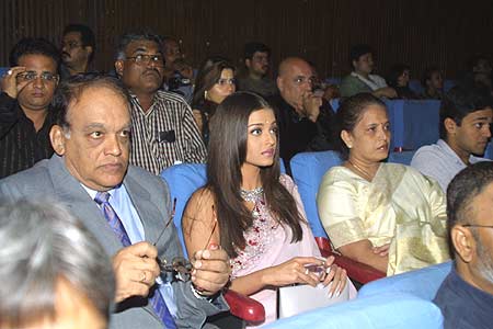 Aishwarya Rai was the last to walk into the theatre. She sits flanked by her parents (Krishna Raj and Vrinda) and brother Aditya. Incidentally, Vrinda turns scriptwriter and Aditya turns co-producer with Ash's debut home production Dil Ka Rishta.