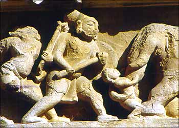 ![]() ![]() The Adinatha Temple in the eastern group and Duladeo Temple in the southern group are famous for their erotic images of gods and nymphs. Duladeo's neighbour, the Chaturbhuj Temple, on the other hand, is devoid of eroticism. Ghantai, a Jain temple in the eastern group, must not be missed for its portrayal of 16 dreams of Mahavira's mother. BACK NEXT Photographs: Phal S Girota |